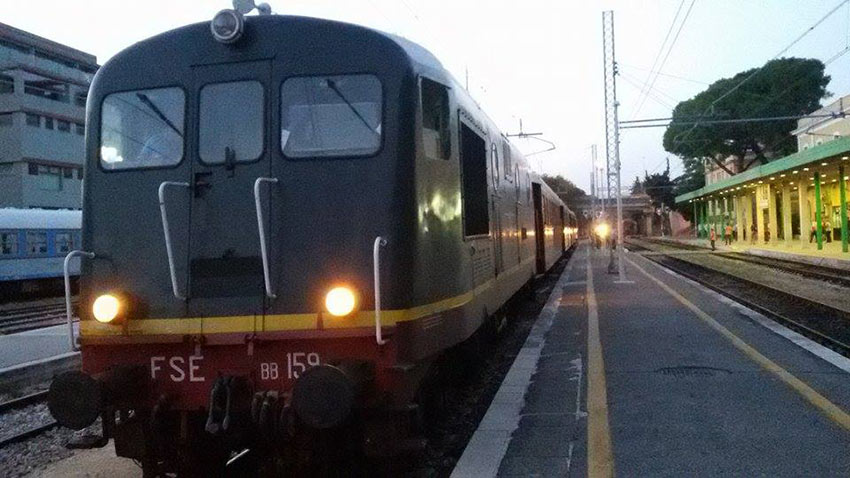 Scene già viste un mese prima, quando sullo stesso binario il “Salento Express” aveva fatto la sua prima corsa. La macchina era dei primi anni ‘50: pezzo da museo, sì, ma ancora nel pieno della sua potenza. I vagoni risalivano forse al tempo della guerra: quasi gli stessi di quelli che ci portavano da Taranto a Martina, dove la notte ci svegliavano terribili boati: le bombe che facevano lampeggiare l’orizzonte e crollare i palazzi. Allora il treno non oltrepassava la stazione di Nasisi, perché quella di Taranto era a rischio. Da lì alle Tre Carrare, dove abitavo (saranno venti chilometri? Di più?) bisognava andare a piedi. Camminata stancante, che dovevamo fare dopo ogni bombardamento per accertarci che la nostra via non fosse sommersa dalle macerie. Quando il conflitto si concluse e si raccoglievano i cocci, alla stazione della Bimare andavamo con la carrozza. Il vetturino, sempre lo stesso, in cassetta con il cappello a cilindro, si presentava alle sei del mattino, quando le strade erano deserte, le finestre chiuse e i negozi pure, a parte quello del fornaio. Il treno per Martina partiva alle 7.30. Le tappe: Nasisi, Statte, Crispiano, Madonna del Pozzo, San Paolo. Mi inebriava il fischio “d’a Ciucculatera” che a volte aveva un respiro affannoso.