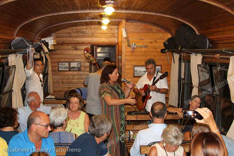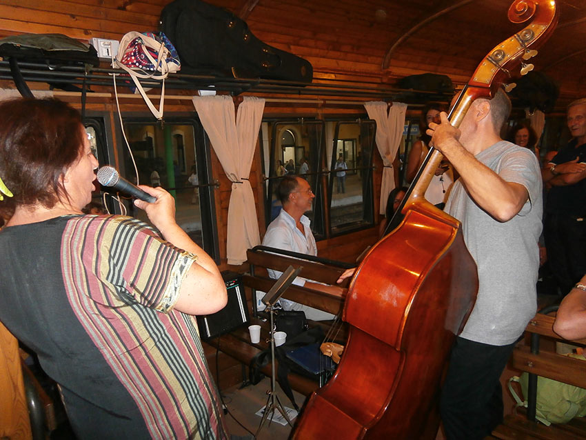 “Il treno chiamato jazz” sibilava quasi in segno di allegria e i bambini tripudiavano. Dario De Simone, dell’Aisaf di Bari, psicopompo dell’iniziativa, era frastornato, sballottato tra il cronista ansioso di sapere mille particolari e l’operatore di Telenorba che lo riprendeva di faccia, di profilo, nascosto dal contrabbasso che il suonatore faceva fatica a salvare dalla ressa.
